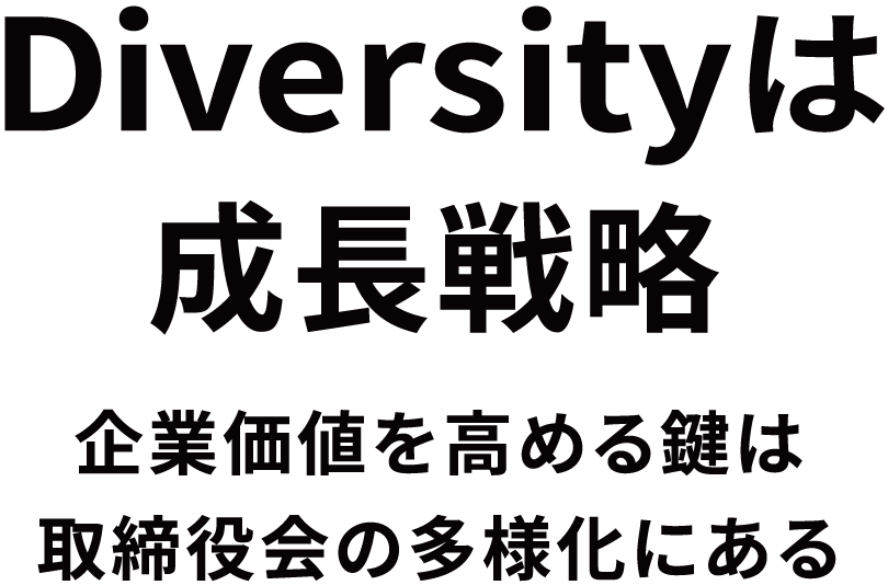 私達は、企業のダイバーシティ確保に貢献したいという想いから、「Diversityは成長戦略」を掲げて起業しました。政府と東証は、2030年までにプライム上場企業の女性役員30%以上を目指すとしています。2023年現在、上場企業の女性役員は10.6%。取締役会のダイバーシティ確保は、会社・株主のための成長戦略です。 企業価値向上のため、イノベーションを起こす企業の意思決定のため、取締役会の多様化のお手伝いをします。