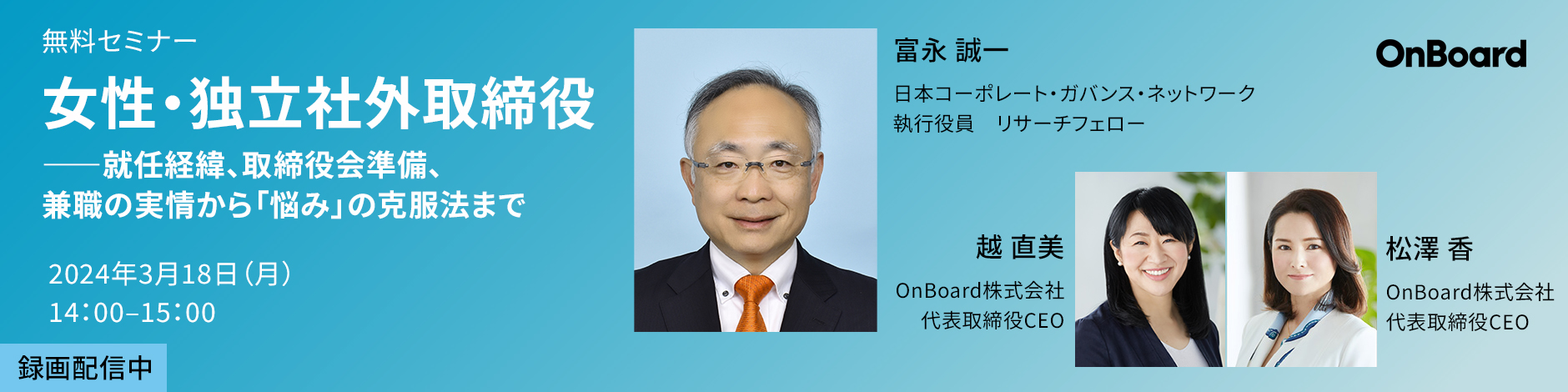 取締役・監査役と候補者の方に対して、トレーニングとネットワーキングの場をご提供します。取締役・監査役に必要な法律・会計や経験豊富な社外役員から実務を学ぶ連続セミナーを開催し、ネットワーキングも行います。また、コーポレートガバナンスに関する最新のトピックについて、企業のご担当者の方にもお聞きいただける単回のセミナーを随時開催します。