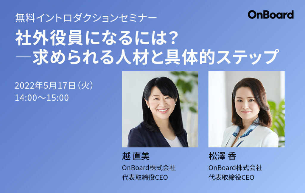 5月17日に当社 代表取締役CEO 越 直美、松澤 香による「イントロダクションセミナー」を、オンラインにて開催しました。