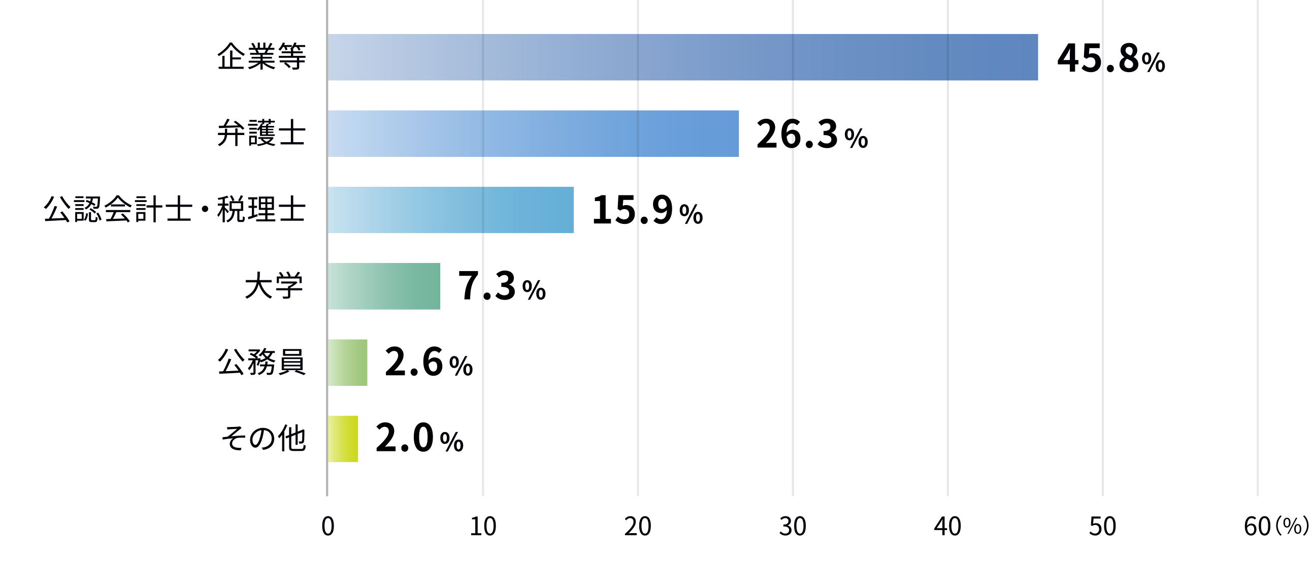 当社CEOの独自ネットワークにより、経験豊富な人材が多く登録しています。当社CEOが四大法律事務所出身の弁護士であることから、企業法務専門の女性弁護士に広くリーチします。女性の会計士や経営者についても優れたネットワークがあります。